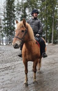 Kuvassa minä ja ihana Aava ratsastustunnin jälkeen 14. huhtikuuta 2022.