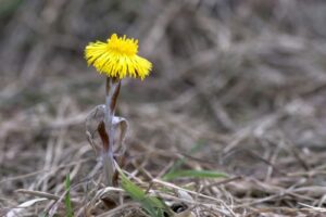 Täällä näkyy jo vähän leskenlehtiä. Eikä ole satanut vettä. Maa on tosi kuivaa.