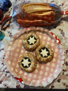 Kävin kaupassa ja ostin noita hintavia viinereitä joulun kunniaksi sekä joululimppua ja lehtitaikinaa.