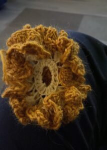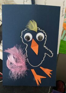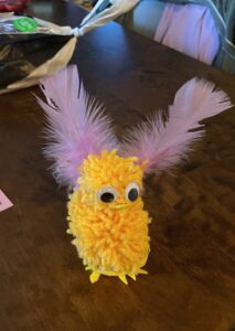Pääsiäisen odotusta 15.4.2025 Olen virkannut muistisairaalle myyntiin yhdistykseen tuollaisen hypistely pallon. Sitten oli leipämyyjäiset. Leivoin niihin saaristolaisleipää ja kanelikeksejä. Tein pääsiäiseen tipuja langoista ja kortin malliksi.