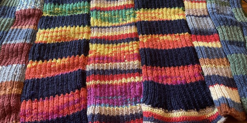 Nämä villaneulossuikaleet olen tehnyt aiemmin. Nyt olen yhdistänyt ne ja virkannut 3 kerroksen reunan.